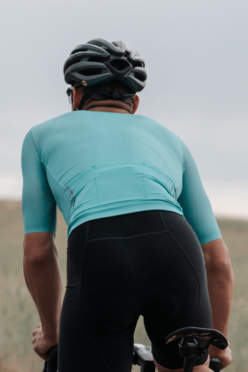 Cuello Aero Amplio: Diseño que permite llevar el maillot completamente cerrado sin sensación de agobio, optimizando el flujo de aire.